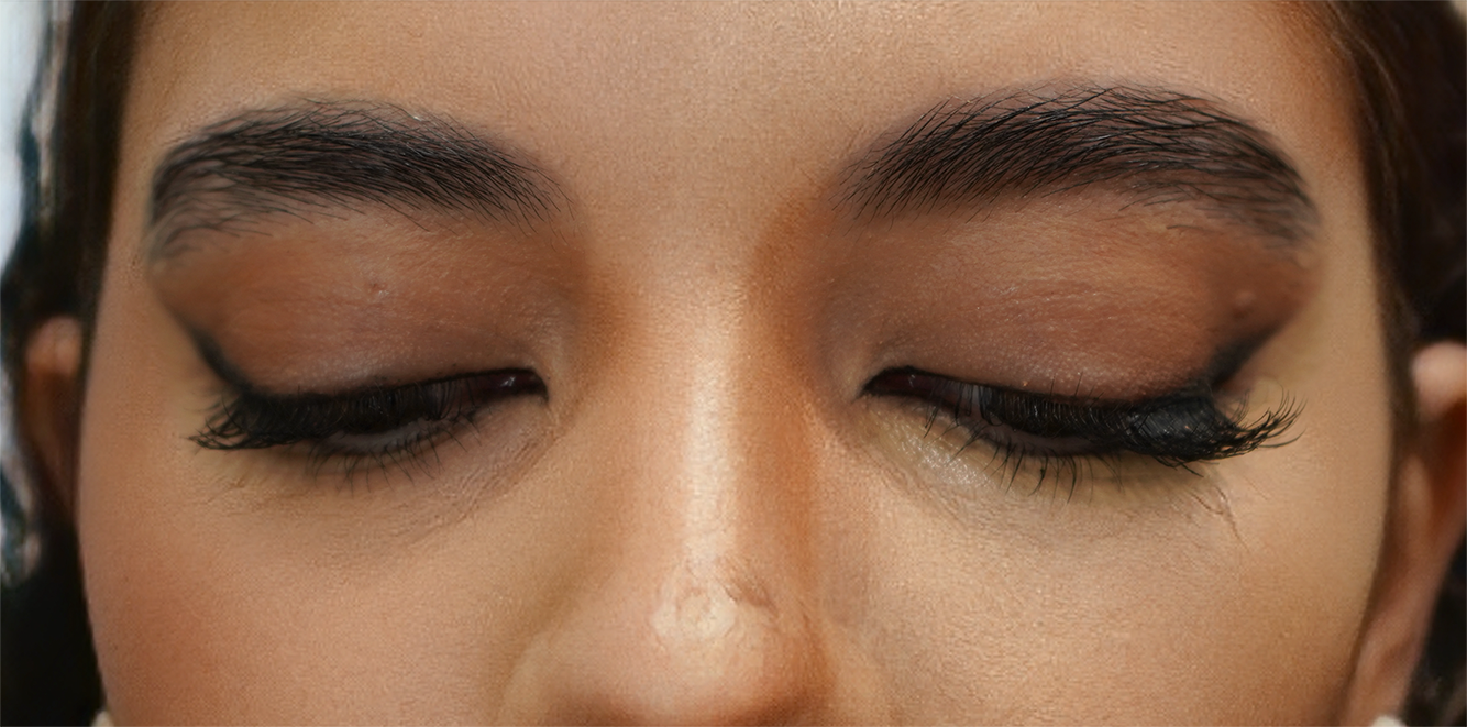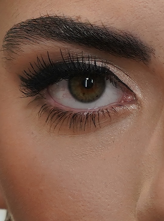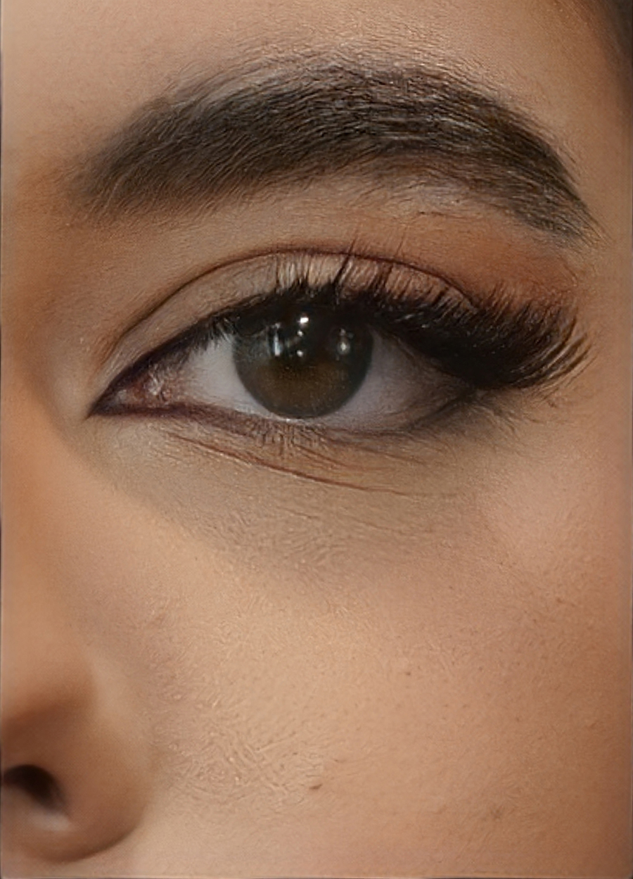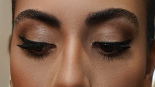 Ojos: Cambia ligeramente la forma del ojo levantándolo y alargándolo para crear una forma más almendrada. Simultáneamente se levanta la cola de la ceja para que no baje creando un arco.
