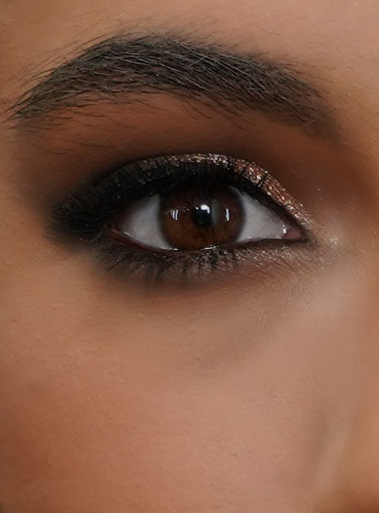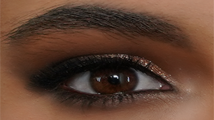 Ojos: Tipo smokey eyes.